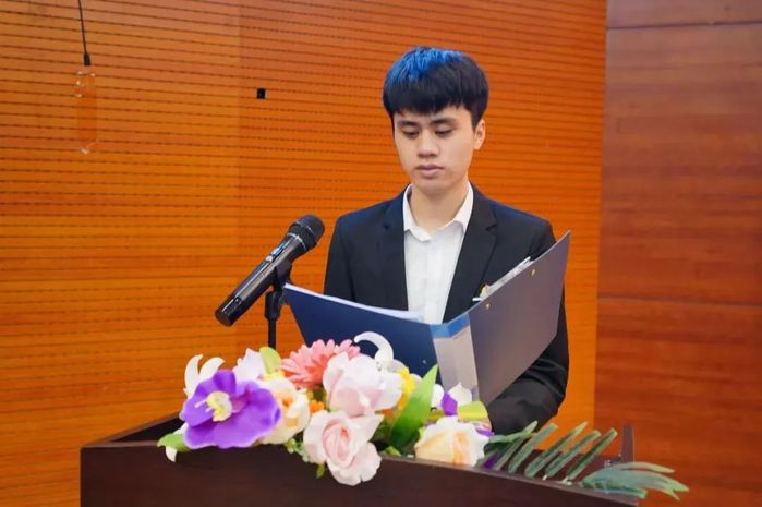 学校学生工作处处长谯炜骅宣读倡议书,号召全校各级学生组织要恪守学生本分、牢记服务宗旨、永葆理想情怀、勤勉务实做事,努力打造对党忠诚、信念坚定、朝气蓬勃的先进学生组织。