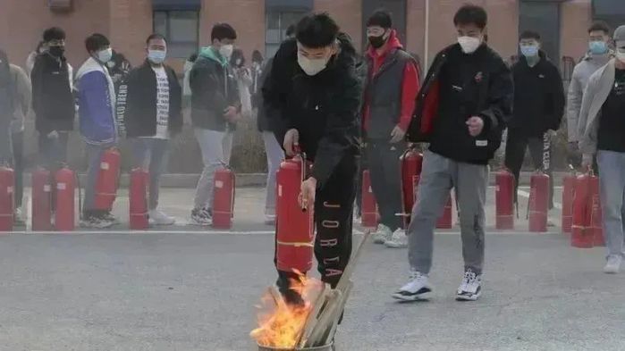 国家级东北亚文化创意科技园区治安消防部经理韩晓龙向现场师生讲解了消防安全知识及火灾突发的应对措施。重点讲解了灭火器的使用方法,并现场进行了演示。随后又邀请现场的师生体验使用灭火器灭火的过程。