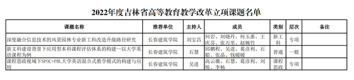 近日,吉林省教育厅公布了2022年度吉林省高等教育教学改革立项课题和本科高校校企合作协同育人项目名单。学校共有9项课题获批,其中高等教育教学改革立项课题3项,校企合作协同育人项目6项。