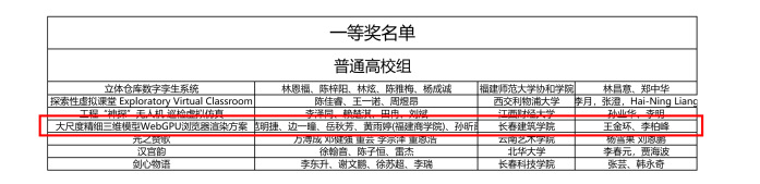 近日,由中国计算机学会、中国图象图形学学会、中国仿真学会共同主办的2022年第五届中国虚拟现实大赛在云南昆明圆满落幕。经过层层选拔与激烈角逐,学校电气信息学院王金环、李柏峰作为指导教师,范明捷、边一曈、孙昕禹、岳秋芳、黄雨婷5名同学组成的团队凭借参赛作品“大尺度精细三维模型WebGPU浏览器渲染方案”荣获大赛一等奖;学校文化创意产业学院周世明作为指导教师,焦健、孟治、毛羽凡、刘思含4名同学组成的团队凭借参赛作品“中华客栈”荣获大赛二等奖。