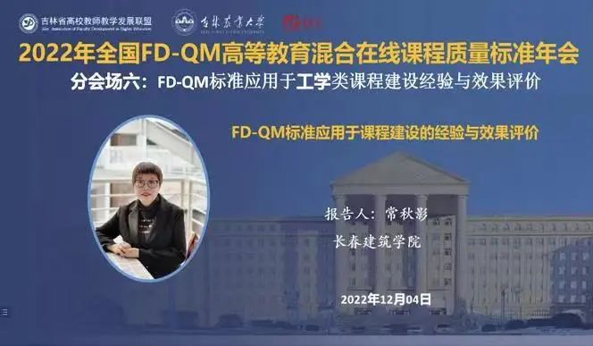 会上,学校土木工程学院教师常秋影作为工科类课程代表,作题为《FD-QM标准应用于课程建设的经验与效果评价——以钢结构设计课程为例》的分享,她从课程的建设历程、基于FD-QM标准的课程重构、课程应用等方面介绍了经验。学校文化创意产业学院教师郑煜的《网上创业》课程被收录到《FD-QM混合在线课程教学案例》并在平台展示,她从“萌芽、新生、深化、蝶变”四个阶段介绍了课程发展历程、FD-QM标准的应用及课程建设成效。