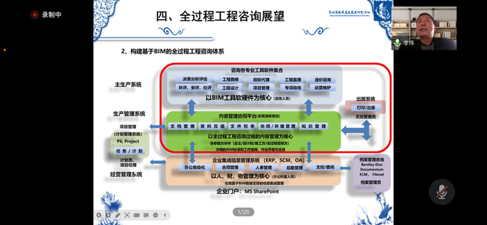李伟教授在讲座中介绍了当前国际形势下全过程咨询的背景,从上世纪90年代发展至今,全过程咨询业务已遍布工程建设各个领域。我国是从2017年开始逐步实行全过程咨询,此前的工程咨询只是工程设计的拓展和延伸。他强调,全过程工程咨询是一种创新咨询服务组织实施方式,大力发展以市场需求为导向、满足委托方多样化需求的新型咨询服务模式是未来发展方向。