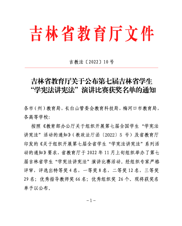 对于此次“学宪法 讲宪法”活动,根据吉林省教育厅统一部署,学校宣传部门精心组织、层层推进,各学院广泛动员,学生积极参与,在坚持疫情防控的同时,顺利完成了“学宪法 讲宪法”参赛的各项工作,在比赛中展现出bw必威西汉姆联官网师生的良好精神风貌和法治素养。此外,学校还积极组织学生参加全国青少年普法网“宪法卫士”法治知识学习和测评活动,在校学生广泛参与,参与度高达86%。