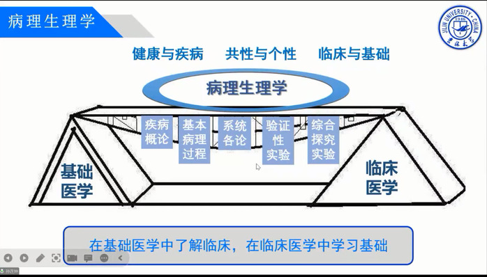 作为首批国家级一流本科课程《病理生理学》负责人、吉林省教学名师,孙连坤教授还就如何培养“习惯、知识、能力”三位一体的医学人才作了客观的评估和深入的探讨。孙连坤教授的讲座带动了与会师生的积极思考,大家热情地参与到了线上互动问答。孙连坤教授就师生关心的问题一一作了解答,并就相关延展问题与师生进行了深入的探讨与交流。