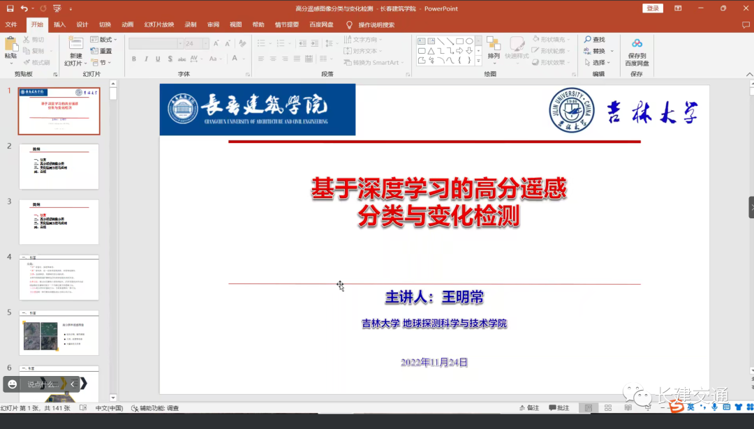 王教授指出,传统的像素级、对象级检测方法能够解决的问题,在深度学习的处理方法中都得到了更高精度、更具鲁棒性的发展。涌现出的一系列神经网络,在图像分类、变化检测方面都展现出了不错的效果。同时,他还为同学们介绍了基于高分影像特点,构建深度学习网络,进行高分影像场景分类和变化检测理论和方法研究。
