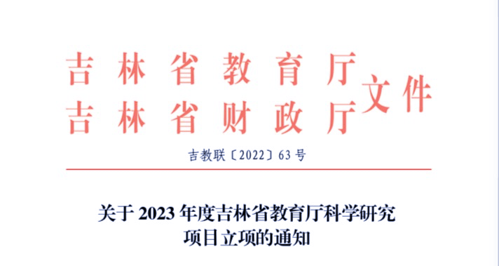 日前,吉林省教育厅下发《关于2023年度吉林省教育厅科学研究项目立项的通知》(吉教联202263号),公布了科学研究项目立项名单,教育厅通过专家初审、复审以及省级财政部门审核复议等评审程序,学校获得批准立项项目22项。