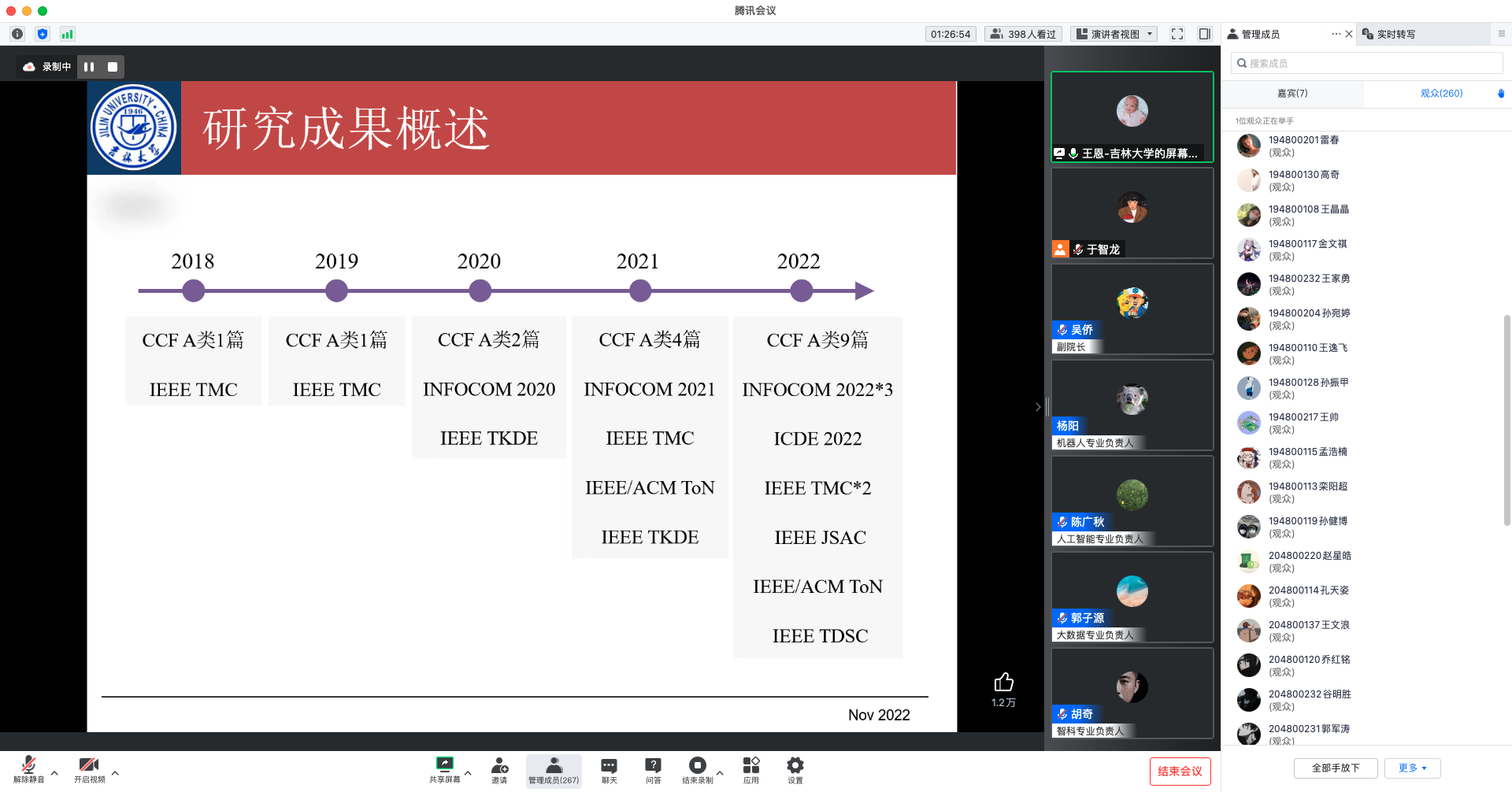 人工智能产业学院为进一步提升学院科研技术水平,切实关注学生与教师在人工智能前沿领域的创新能力,更好地发挥基层教学组织在立德树人、人才培养、科研创新中的重要作用,11月8日邀请吉林大学博士研究生导师王恩教授主讲了主题为“移动群智感知的关键理论和方法研究”学术讲座。学院全体教师及19、20、21、22级全部专业全体同学参加了讲座。会议由大数据专业教师于智龙主持。