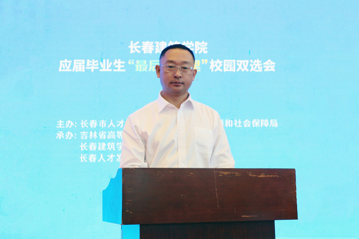 长春市人才服务局产业人才处副处长肖宝和,吉林省高等学校毕业生就业指导中心主任唐洪丰,长春市双阳区人力资源和社会保障局局长杨宁医、副局长李春丽,学校校长任玉珊、党委书记王宝龙、见习副校长冯永、见习副校长李琦等领导参加此次活动。