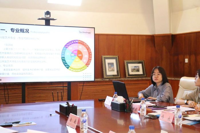 随后,蔡琦围绕拟新增“科技艺术”专业的专业概况、专业背景与需求分析、师资力量、教学资源、课程设置、培养特色等几个方面作了具体的汇报。与会专家通过听取汇报和审阅相关材料,提出了很多宝贵意见,既肯定了专业人才需求调研的前期工作,同时又分别站在学校发展、地方经济建设、企业人才需求等角度,从专业建设方向、人才培养目标、专业课程设置、师资队伍建设、实践教学等方面进行了具体指导。