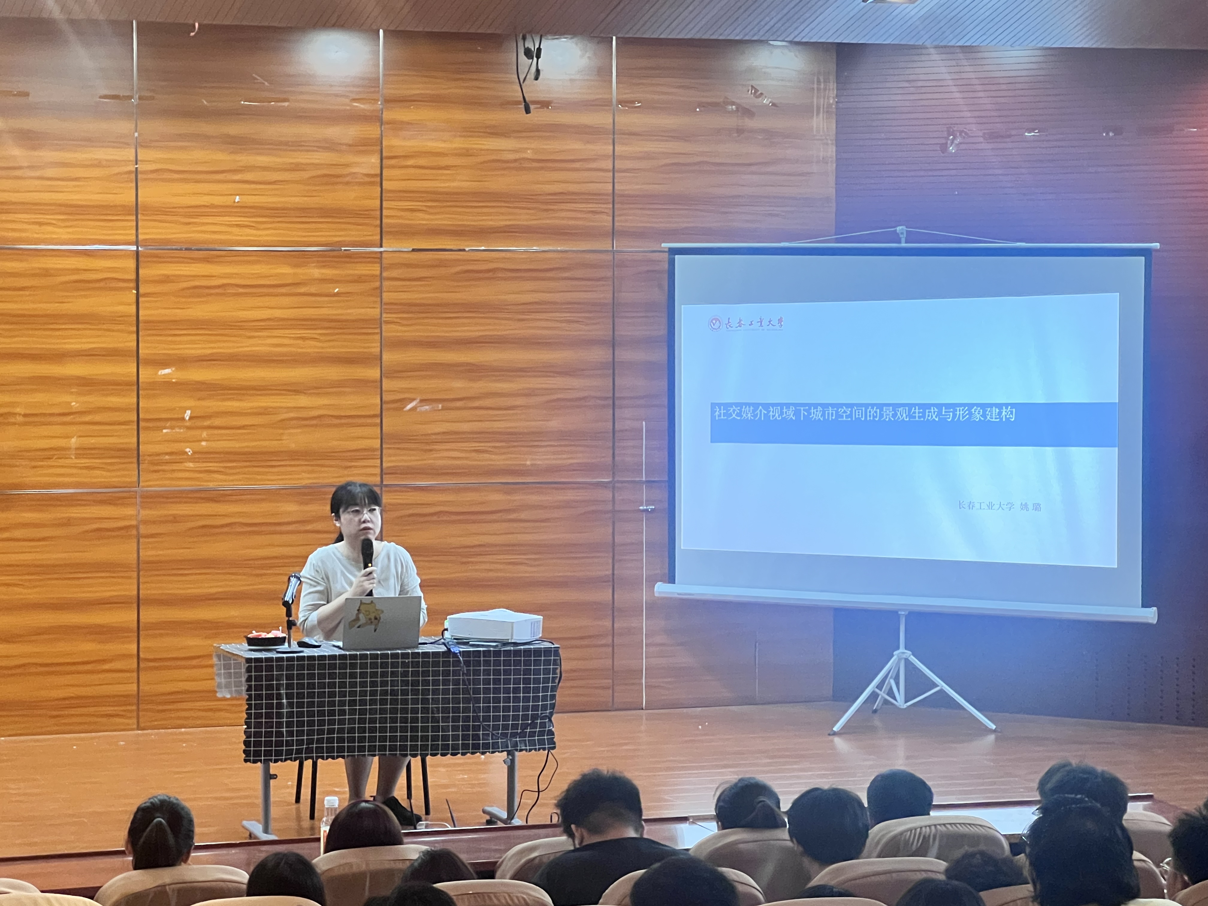 6月19日上午,文化创意产业学院二楼小报告厅举办了以“社交媒介视域下城市空间的景观生成与形象建构”为主题的学术交流讲座。讲座特邀长春工业大学艺术设计学院副院长、研究生导师姚璐副教授主讲,环境设计系全体师生参加了学术交流活动,系主任张妍老师主持了讲座。