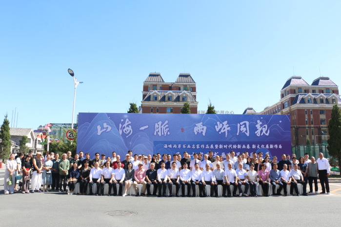 开幕式后,与会领导和嘉宾来到展厅参观展览。此次展览作品内容以歌颂和弘扬中华文化为主,汇集了两岸书画家作品170余件。参展作品各具特色,风格多样,恢弘大气。接下来,与会书画家还将赴长影博物馆、长白山景区景点参访并举办笔会活动。