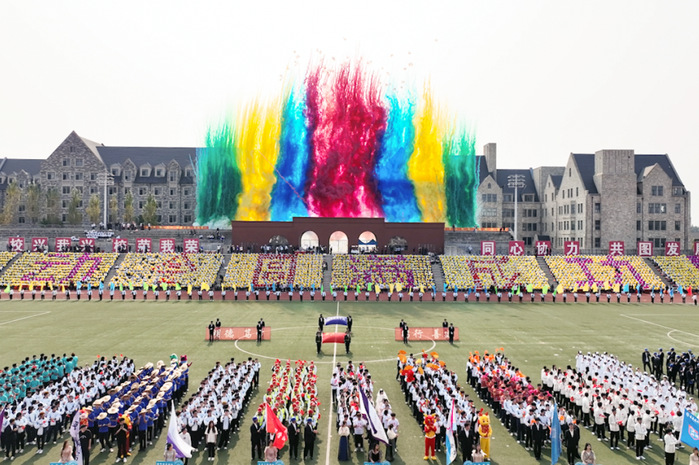 开幕式现场还举行了大型文体展演,为现场观众带来了一场运动活力和校园魅力交相辉映的视听盛宴。军乐演奏激动人心、团体操表演气势恢宏、健美操表演充满激情、舞狮表演威武刚劲,一场场精彩表演、一幕幕精彩画面赢得现场观众阵阵喝彩。