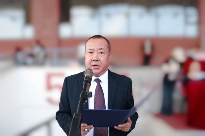 典礼仪式上,任玉珊发表讲话。他代表学校董事长和全校师生员工对2024级新同学的到来表示热烈欢迎!向一路陪伴同学们成长的父母、亲人和师长致以诚挚谢意!向为军训付出辛勤汗水的教官们表示由衷敬意!同时也向在军训中磨砺成长、华丽蜕变的新同学们表示祝贺!