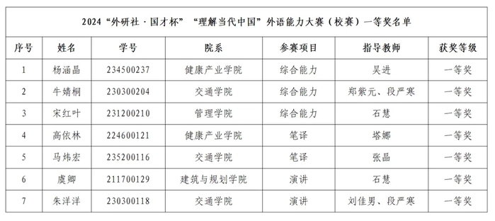 近日,学校基础教学部成功举办2024“外研社·国才杯”“理解当代中国”外语能力大赛(校赛)。此次大赛共有45人获奖,其中一等奖7人,二等奖15人,三等奖23人,获得一等奖的同学将代表学校参加省级决赛。