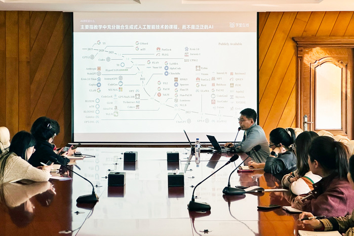 为推动人工智能技术与教育教学深度融合,进一步提升教师在数字化与智能化方面的素养,10月10日下午,学校在行政楼六楼会议室组织召开AI赋能课程建设培训会。会议特邀请学堂在线资深培训讲师程浩作专题报告。学校校级以上一流课程团队成员、教务处相关人员参会。会议由教务处副处长吴秋实主持。
