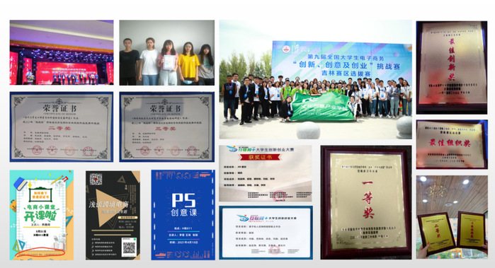 课程有效对接了专业教育与产业需求、课程内容与职业标准、教师团队与职场要求、学生素质与就业能力。自2017年起,课程成功获批吉林省“大学生创新创业训练计划”项目10项,国家级项目5项。近年来,课程孵化出超过20个优质项目,如今日头条自媒体“波哎白”、淘宝店铺“十一点半才起”和跨境电商项目等。学生在各类竞赛中表现优异,累计获得国家级奖项12项,省级奖项500余项。此外,师生共同参与教研项目超过10项,进一步提升了学生的创新和创业能力。