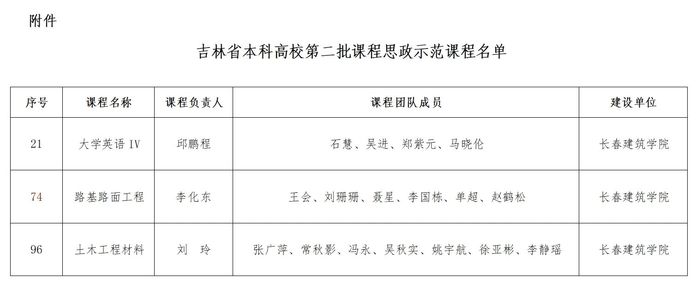 近日,吉林省教育厅公布了《吉林省本科高校第二批课程思政示范课程名单》,经专家评审,遴选认定省级课程思政示范课程128门。学校的《大学英语IV》《路基路面工程》《土木工程材料》三门课程获批为省级课程思政示范课程。