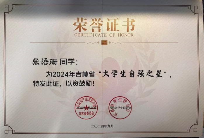 近日,由共青团吉林省委与吉林省学生联合会共同主办的2023-2024年度“大学生自强之星”寻访活动圆满落幕,经综合评审,学校共有两名学生获得2024年吉林省“大学生自强之星”荣誉称号。