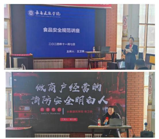11月7日,学生饮食服务中心、保卫处开展校内餐饮服务人员关于食品安全和消防安全的讲座。整个讲座视觉冲击力较强,达到了预期的培训效果,为规范学校食品安全管理,树立消防安全意识,推进平安校园建设起到了积极作用。