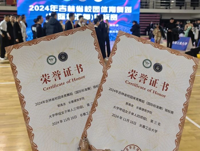 比赛包括拉丁舞、标准舞项目的单、双人组别以及团体舞项目的女子六人、艺术表演舞等组别。学校体育舞蹈队首次参加省级专业体育舞蹈大赛,比赛中,学校建筑与规划学院的郭禹含同学经过多轮角逐斩获佳绩,从来自全省高校的几十名运动员当中脱颖而出,荣获大学甲组女子单人三项组第二名、大学甲组女子单人四项组第三名的优异成绩。