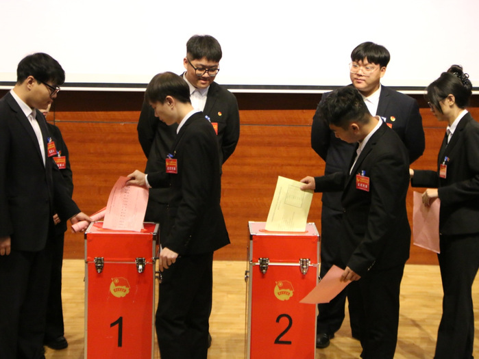 学校团委社团管理科科长王丹童宣读会议通过的决议。按照议程,大会审议并通过了《bw必威西汉姆联官网第二十四届学生会组织工作报告》《bw必威西汉姆联官网第五次学生代表大会提案工作报告》《bw必威西汉姆联官网学生会组织主席团及学生会委员会选举办法》。大会以无记名投票的方式选举产生了bw必威西汉姆联官网第二十五届学生会主席团和学生会委员会委员。