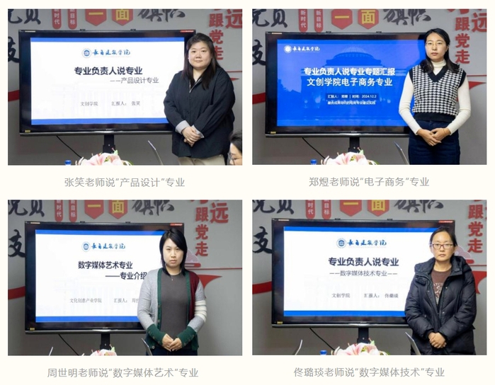随后,各专业负责人依次就专业概述、培养目标与毕业要求、课程体系与资源建设、师资队伍与科研方向、学生发展与支持以及专业发展趋势与挑战等方面进行了详细汇报。