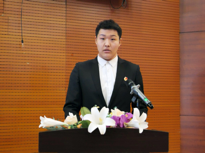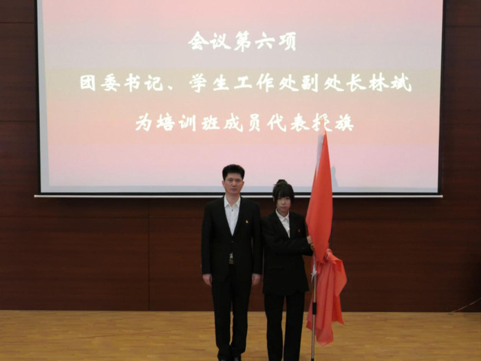 2024年度学校“青马工程”学员彭树轩代表全体学员庄严承诺,珍惜本次培训机会,以虚心的求知态度、饱满的学习热情投入到培训中,努力成长为理想坚定、敢于担当的青年马克思主义者。