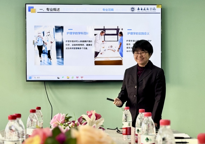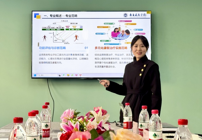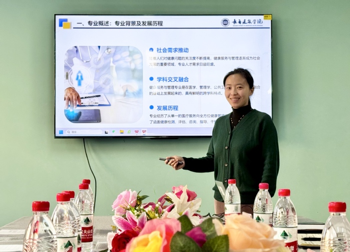 随后,护理学专业、康复治疗学专业、健康服务与管理专业的三位专业负责人依次围绕专业概述、培养目标与毕业要求、课程体系与资源建设、师资队伍与科研方向、学生发展与支持、专业发展趋势与挑战等六个维度,全面介绍了专业建设现状、发展规划,以及在教学改革、课程建设、师资培养等方面的成果与经验。各位负责人的发言内容精炼,实事求是,数据准确,充分展示了学院对专业建设的重视,彰显了健康产业学院在专业建设方面的雄厚实力和巨大潜力。