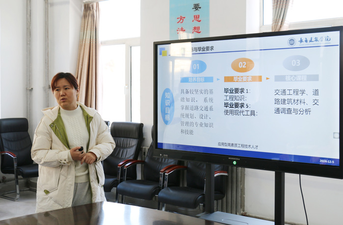 随后,交通工程专业、道路桥梁与渡河工程专业、测绘工程专业、智慧交通专业四位专业负责人依次围绕专业概述、培养目标与毕业要求、课程体系与资源建设、师资队伍与科研方向、学生发展与支持以及专业发展趋势与挑战六个方面,对各自专业进行了全面而深入的剖析。他们详细讲述了专业的历史背景、当前规模和特色优势,并结合行业动态与市场需求,深入解读了专业的培养目标和毕业要求。同时,展示了课程体系如何紧密围绕培养目标构建,以及教学资源如何有效保障教学质量。在师资队伍建设方面,各专业负责人介绍了师资队伍的结构、学术成就和教学能力提升的措施,并分享了科研成果在教学中的转化应用情况。此外,他们还就学生的职业发展规划、实践能力培养、创新创业教育等方面的支持措施进行了详细说明,并对专业未来面临的机遇与挑战作了前瞻性分析,提出了应对策略和发展规划。