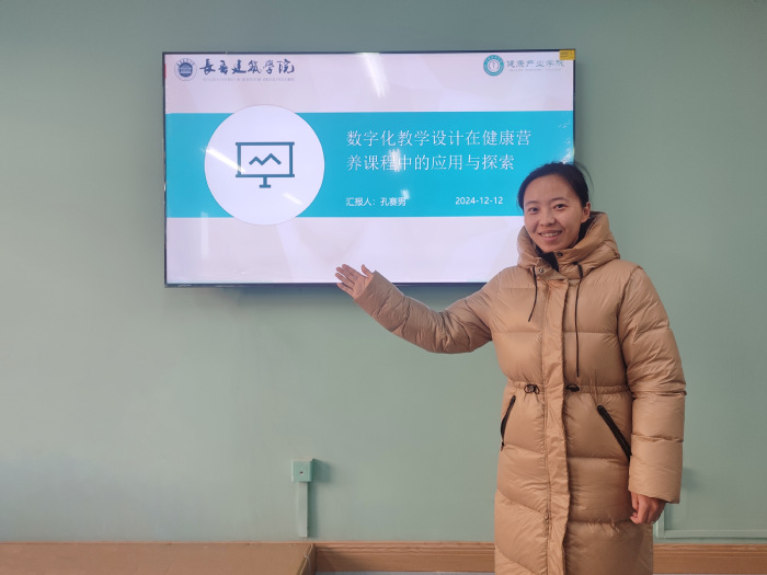 本次活动围绕“数字化教学设计在健康营养课程中的应用与探索”主题,健康服务与管理教研室孔赛男老师担任主讲人,学院院长刘玉和及学院相关教师参加。
