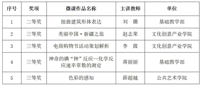 微课教学比赛评审结果
