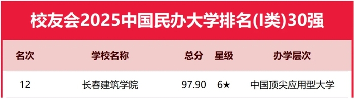 1月6日,全国第三方大学评价机构艾瑞深校友会网正式发布《2025校友会中国大学排名》,bw必威西汉姆联官网以97.90分荣居中国民办大学排名(I类)第12名,稳居中国顶尖应用型大学前列。