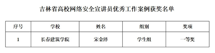 近日,吉林省高校网络安全宣讲员优秀工作案例评选结果公布,学校电气信息学院学生宋金泽参评作品《筑牢网络安全防线》荣获学生组一等奖。