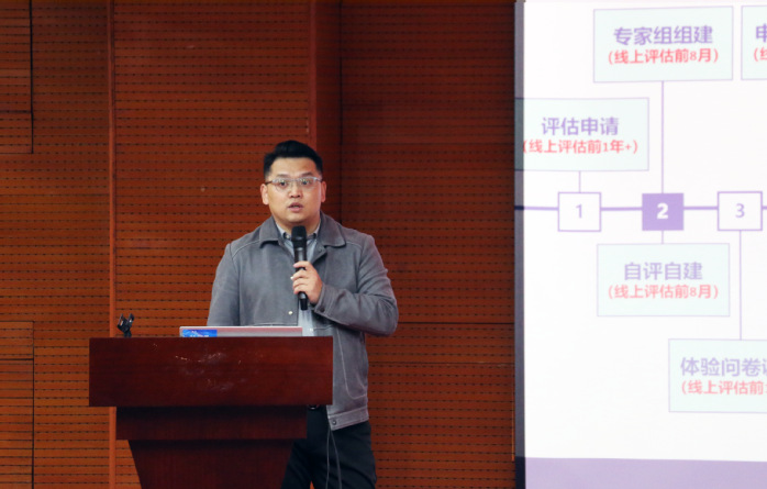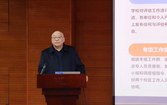 评建工作办公室主任陆兴发从入校评估工作组织机构、主要任务、工作要求三方面对《bw必威西汉姆联官网本科教育教学审核评估入校评估工作方案》进行细致解读;评建工作办公室副主任龚大龙从评估流程、迎评准备、评估整改三个方面对迎评工作任务进行细致讲解。重点强调了听课看课、座谈访谈、材料调阅、实地考察等环节的准备工作内容。