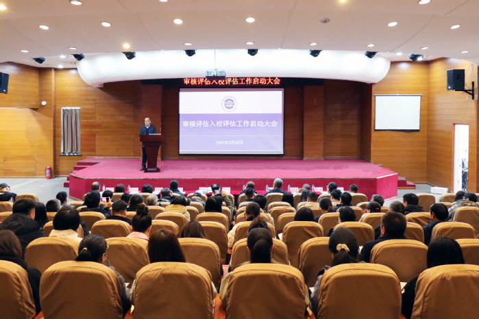 为扎实推进学校审核评估工作高效有序开展,3月28日上午,学校在土木工程学院报告厅组织召开审核评估入校评估启动大会。学校领导、中层干部、入校评估专项工作组成员、教学单位科级以上人员、教学秘书、资产管理员、辅导员等300余人参加了会议。会议由副校长张东鸣主持。