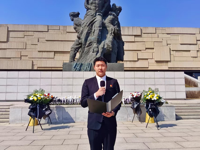学生代表彭树轩在发言中表示,革命先烈用热血与生命,为我们换来了今天的安宁生活。作为新时代的青年学生,我们定当铭记历史,传承遗志,努力学习,努力成长为担当民族复兴大任的时代新人。