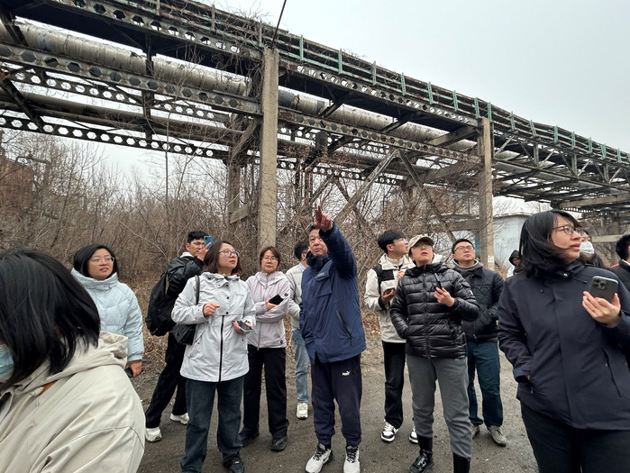 老厂新生:一堂行走的“工业历史课”。作为本次调研的核心环节,特邀在煤气厂工作逾20年的厂区主任担任讲述人。从锈迹斑斑的煤气储罐到纵横交错的管道网络,从斑驳的操作车间到记录岁月痕迹的老档案,讲述人以亲身经历回顾了长春煤气工业从起步、发展到转型的百年历程。“这里不仅是能源生产的基地,更是几代工人奋斗的见证。”他指着一台停运多年的焦化设备感慨道,“希望年轻人能用新视角赋予这些‘老伙计’新生命。”