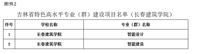 近日,吉林省教育厅公布了《关于公布吉林省特色高水平学科(群)、专业(群)建设项目名单的通知》,学校“智能设计”“智能建造”专业(群)获批吉林省特色高水平专业(群)建设项目。