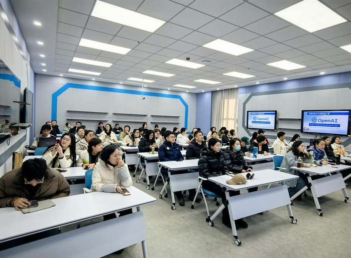 3月28日下午,教师教学发展处在管理学院智慧教室303室举办“智教未来:AI驱动课程创新与智慧教学实践工作坊”,邀请超星资深培训师来校讲授。主讲人聚焦知识图谱构建、AI助教应用及全场景教学支持三大模块,为教师深入解析了人工智能技术在教学场景中的创新应用。