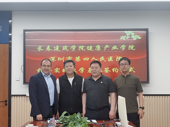 为切实做好毕业实习和就业服务工作,进一步强化高校与医疗机构的合作交流,切实提升学生的实践能力与就业竞争力,4月15日,学校健康产业学院与深圳市第四人民医院正式签订校外实践教学基地协议。深圳市第四人民医院党委书记王诚、院长伊森·库德巴林,学校健康产业学院院长刘玉和、党总支书记孙一平等出席签订仪式。