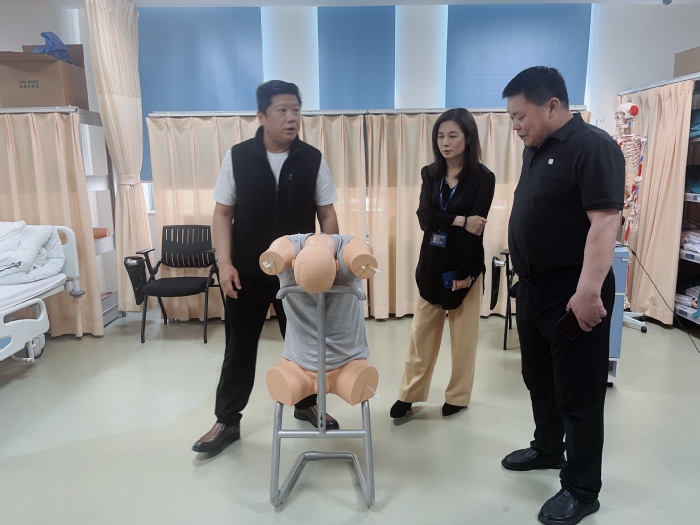 王诚详细介绍了医院各科室的特色技术以及医护人员的系统化培养模式。刘玉和一行在医院负责人引导下参观了医院重点科室、教学设施及学生实习环境。