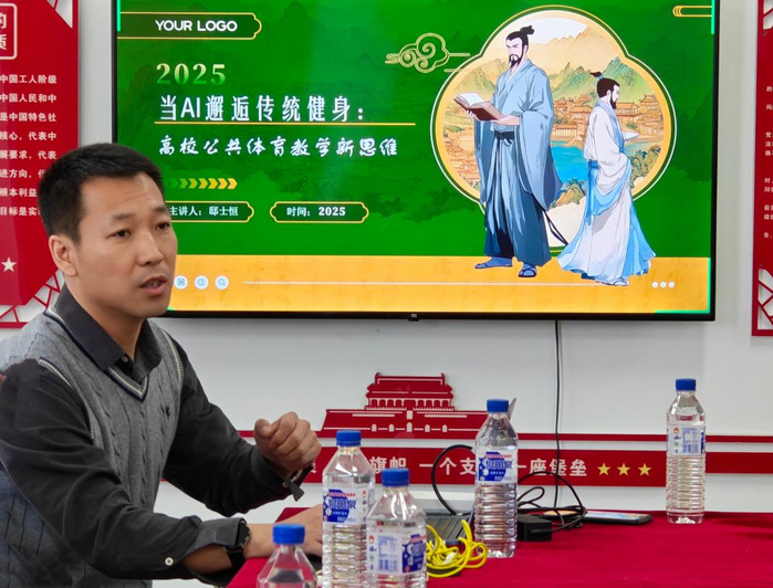 近日,体育教研部举办“当AI邂逅传统健身:高校公共体育教学新思维”教学工作坊。活动由体育教研部副教授邸士恒主讲,全体教师参与学习讨论。