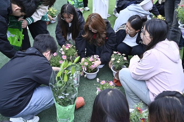 为了舒缓学生的情绪压力,深化学生的生命认知,促进学生的社交互动,渲染积极浓厚的校园心理氛围,5月9日中午,学校学生工作处心理健康教育中心在两个校区的体育场同时开启了一场别开生面的“心灵花语”活动。在心理中心全体教师的带领下,学生们亲手种植花卉,沉浸式体验大自然的独特魅力,让心灵在芬芳中得到滋养。