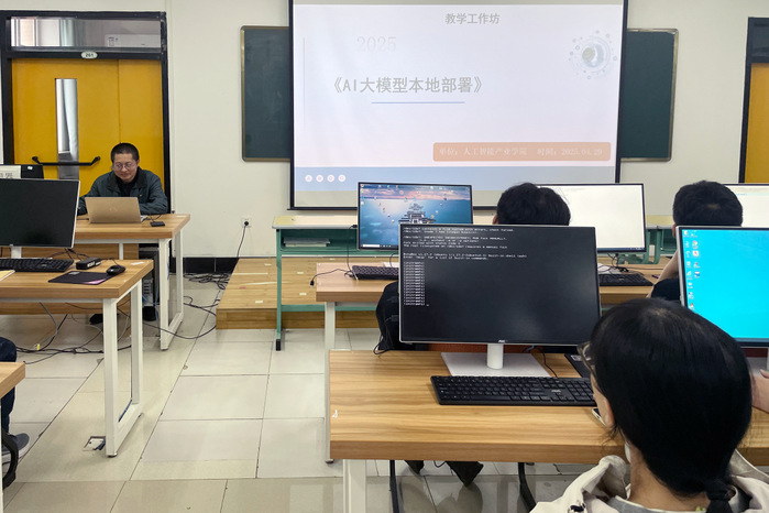 人工智能产业学院举办“AI大模型本地部署”教学工作坊,活动特邀行业企业资深高级工程师行长印授课,全体教师参与学习研讨。