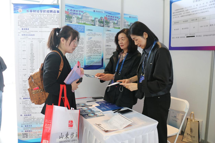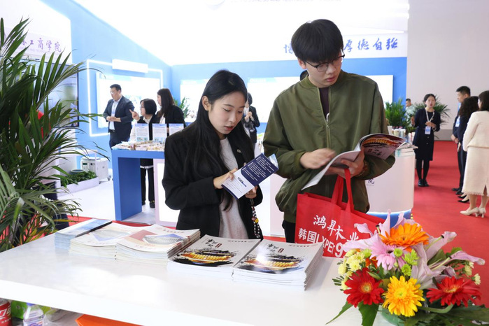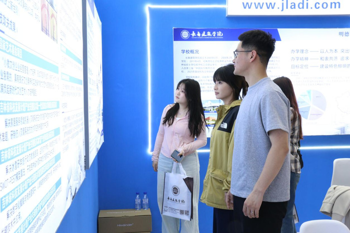 一摞摞制作精美的宣传手册在服务展区整齐陈列,学校招生、就业及人才招聘参展代表以真诚的微笑和专业的素养,为来访者提供热情且精准解答。服务展区前人头攒动,交谈声不绝于耳,成为本次展会接待人次最多,效率最高的展区。