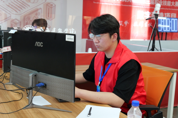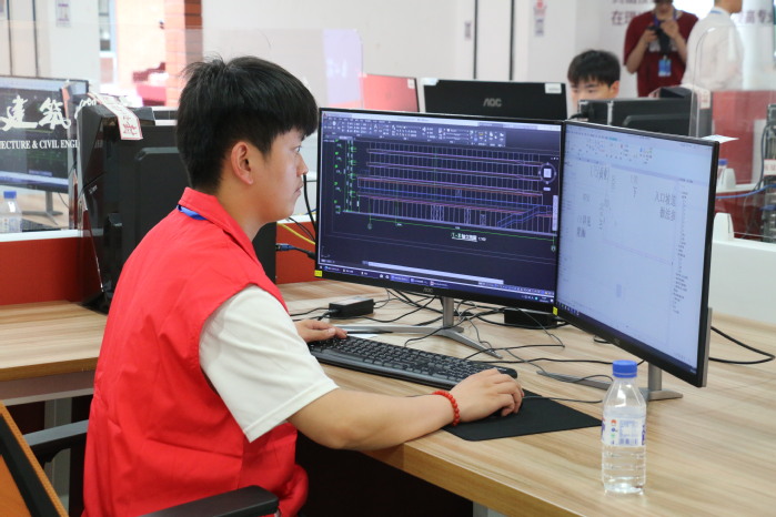 赛场上,选手们全神贯注操作软件,以精湛的专业技术和突破性的创新思维,尽显扎实理论功底、职业素养与新时代技能人才的卓越风采。
