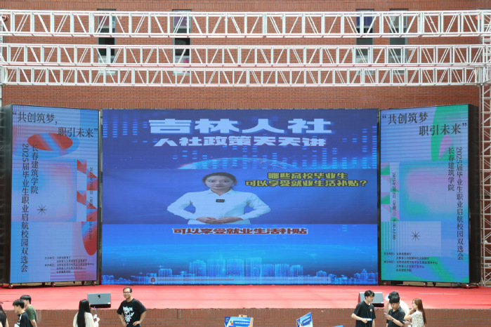 此外,本次招聘活动现场播放了吉林省人力资源和社会保障厅制作的相关政策宣传视频,不仅为学生提供了留省就业的政策及申请方式,还为学生提供了求职风险防范相关的指导。