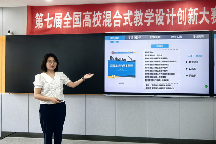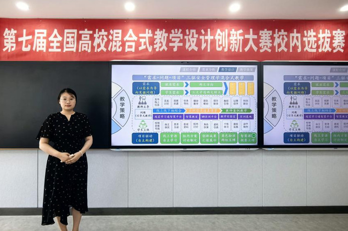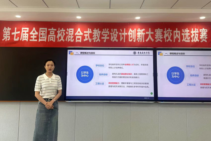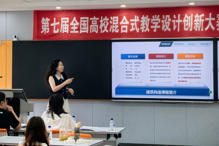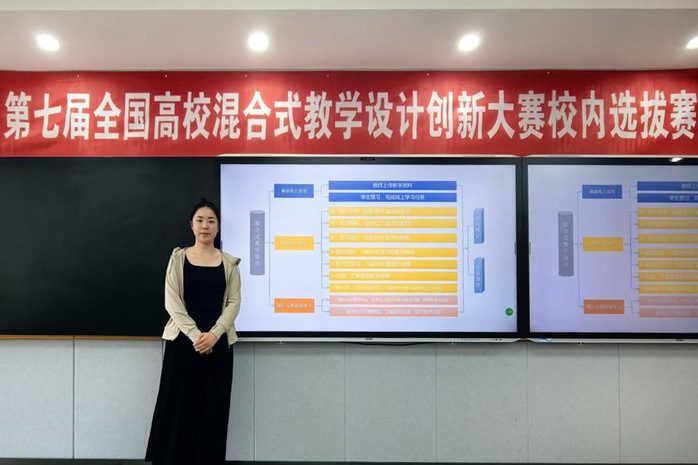 经个人申报和教学单位初赛选拔,8名教师最终入围校级现场赛。参赛教师结合所授课程特点,从学情与目标、内容与资源、课程思政、过程与方法、评价与反馈、创新与推广等维度进行了系统的阐述,专家评委从教师的混合式教学设计方案和现场说课两个方面进行评审。最终土木工程学院张馨月荣获一等奖,健康产业学院于贺团队、基础教学部石慧团队荣获二等奖,城建学院牛田元、建筑与规划学院戴勇荣获三等奖,马克思主义学院沙明社、文化创意产业学院薛航、管理学院赵丹团队荣获优秀奖。获得一等奖及二等奖的三组参赛教师将代表学校参加全国复赛。