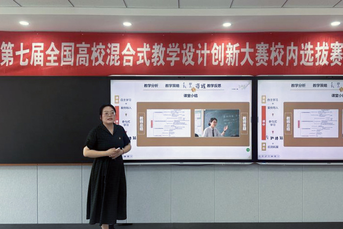 为贯彻落实立德树人根本任务,深化教育教学改革,推进教育数字化转型,提升教师混合式教学设计与创新能力,赋能学校教育教学高质量发展,7月3日,学校在管理学院智慧教室303成功举办第七届全国高校混合式教学设计创新大赛校内选拔赛,吸引了20余位教师到场观摩。
