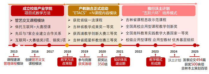 课程建设以来,累计孵化项目2000余个,服务地方企业超百家,学生获国家级、省级奖项500余项,育人成效显著。建成全国首个“吉林六新产业思政与项目资源库”,并获评省级金课、一流课程等多项荣誉,成效显著,辐射广泛。